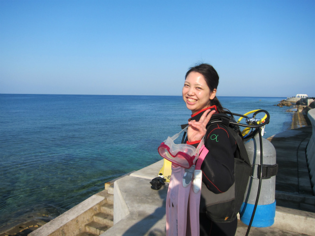 この時期には珍しく南東の風だったので、少しうねりはありましたが、希望の真栄田岬で潜れてよかった~!