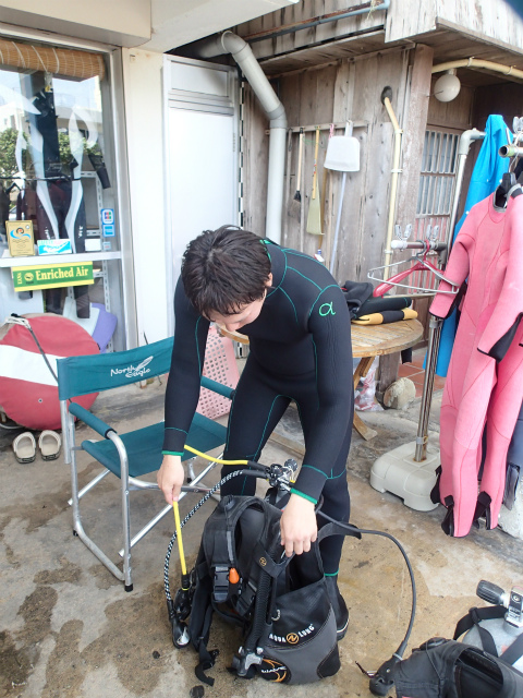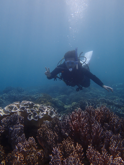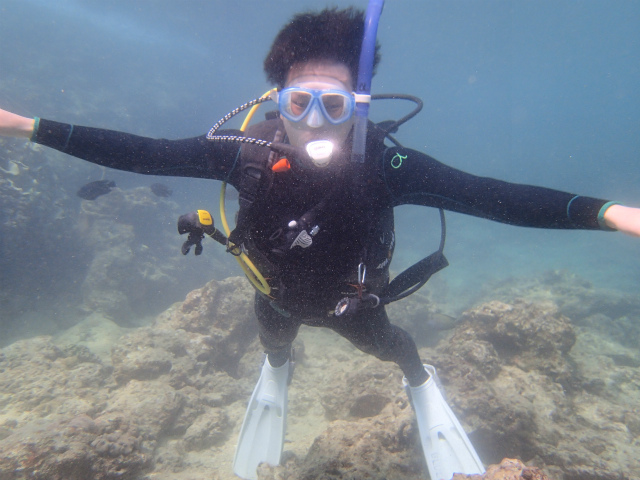 午後からは器材セッティング、限定水域と、海洋実習を行いましたが、すでに自分でBCを操作できる余裕が(笑)