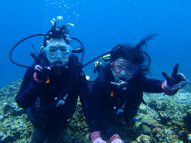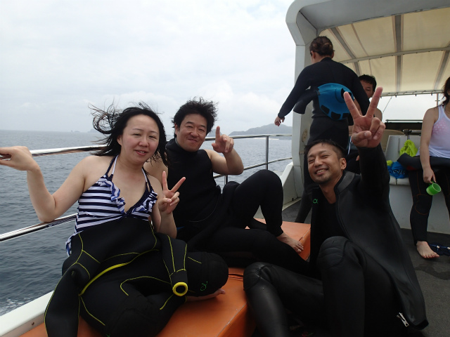 体験ダイビングで海の虜になられたお客様。
