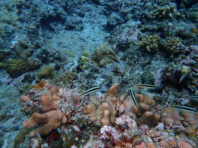 お父さんお母さんは、沖のミジュンの群れや、チンアナゴ、数々の熱帯魚たちを観察しに。
