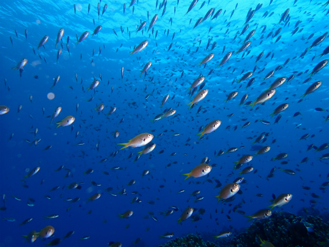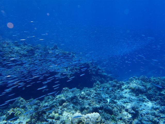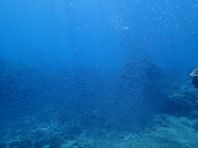 中性浮力のおさらいや、トラブル対応を確認した後、キビナゴの群れを見に。
