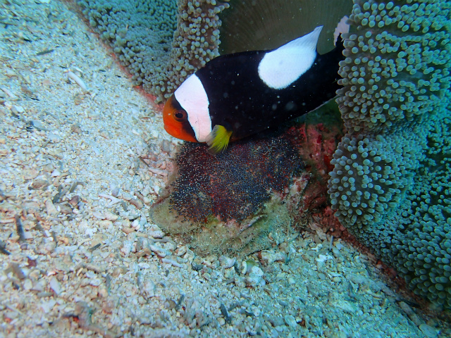 トウアカクマノミが卵を育てていましたよ♪