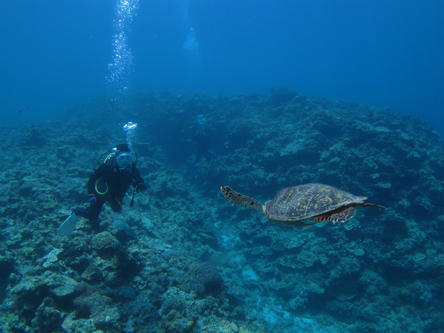 ウミガメを水面から眺めるのが精いっぱいでした。