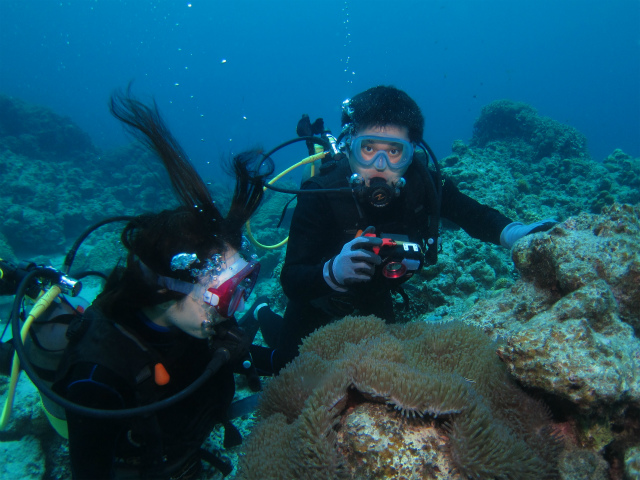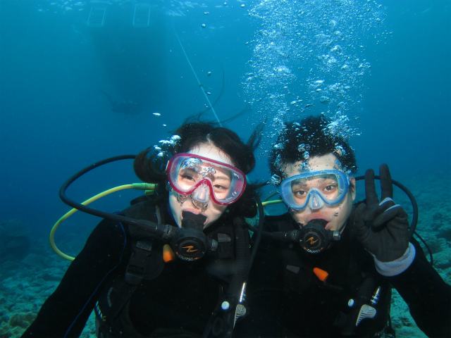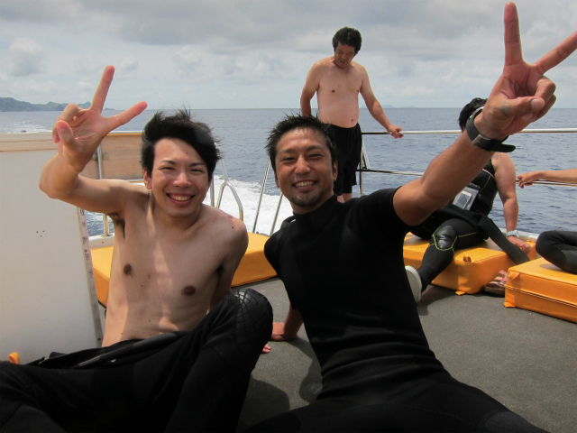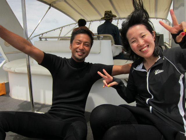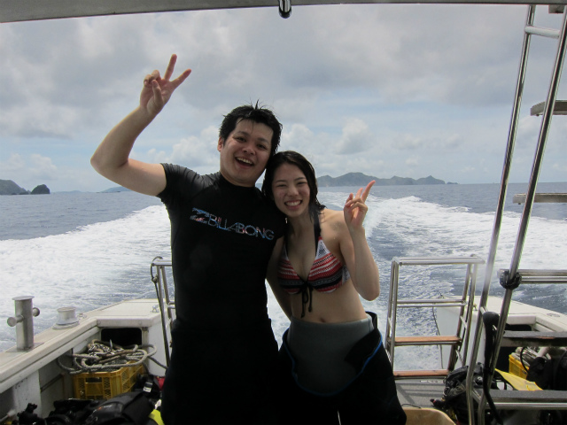 奥さんはすでにダイバーなので、真栄田のボートでFUNダイブ。