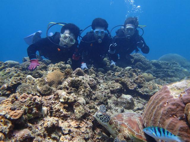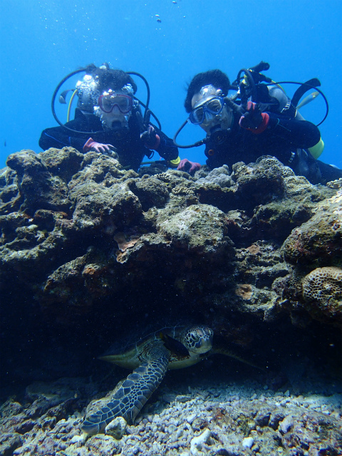 両チームとも、ウミガメに出会え、3本目にはネムリブカにも会えました~。