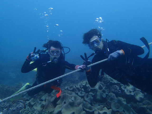 念願の沖縄ダイビングが叶ったお2人は、水中でもニコニコ(笑)