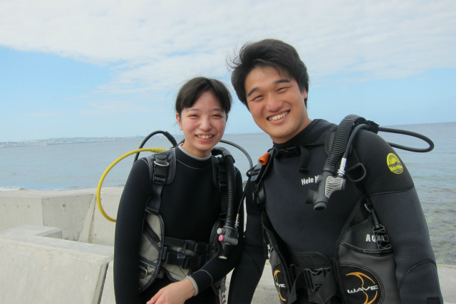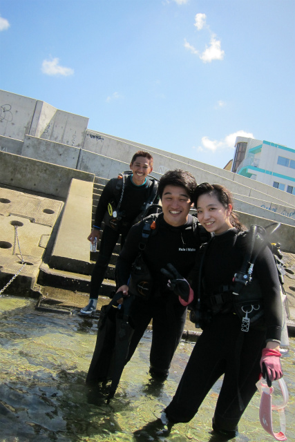 午前のチームは、なんと8月のリピーターさまが彼女をつれてまた潜りに来てくれました!!