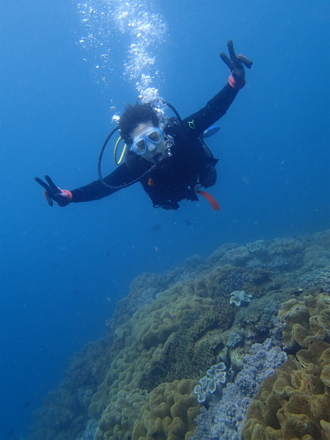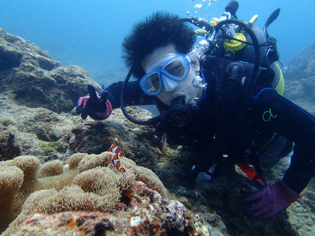 カクレクマノミはもちろん、カマスの群れにも会え、初めてのダイビングを存分に楽しまれていました!