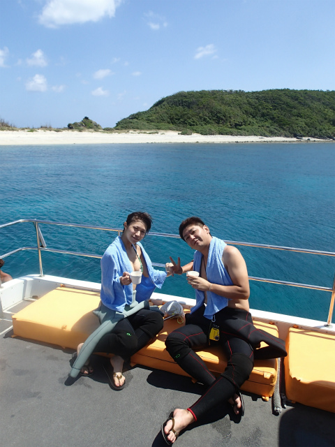 今日は少し船が揺れたので、道中ダウンの方も出ましたが、慶良間についてからは復活!!
