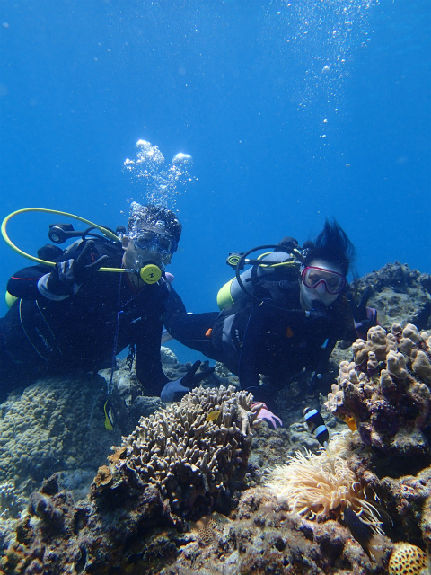 カクレクマノミはもちろん、カマスの群れにも会え、初めてのダイビングを存分に楽しまれていました!