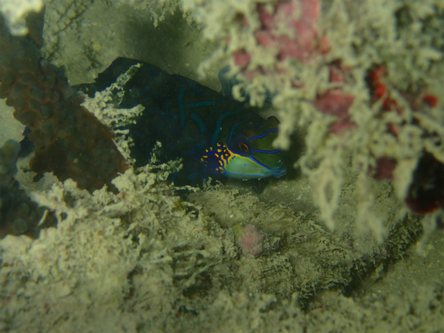 シーサイドパークではじっくり観察できる、ダイバーの人気者といえば、ニシキテグリ♪