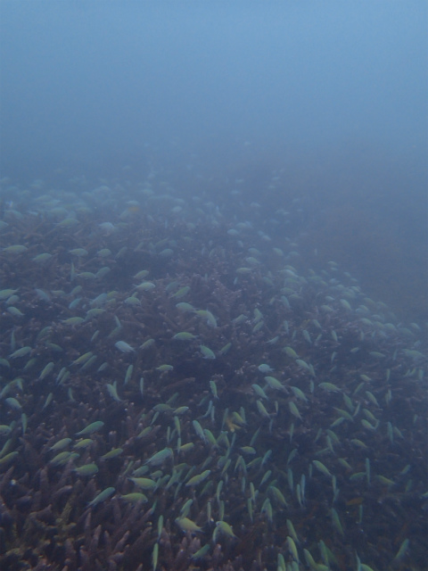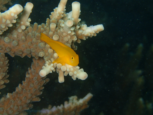 サンゴに舞うデバスズメダイに、キイロサンゴハゼ。