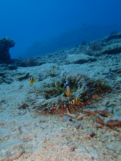 浅瀬のスズメダイたちや、ウミウシ、クマノミでカメラ練習。