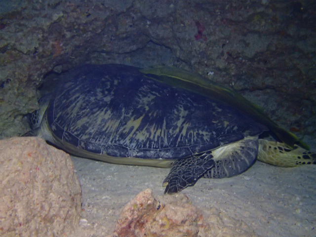 岩かと思ったとゲストも驚くほど大きなアオウミガメですが、寝顔は可愛いんですよ♪