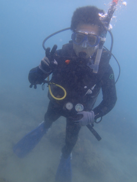 念願叶って潜ることができましたが、最初は深度キープに焦っていたようです(笑)