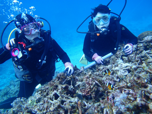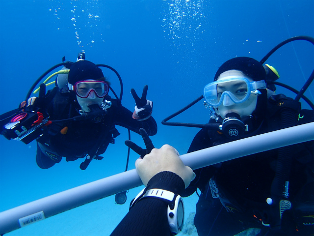6月にライセンスを取って以来のMちゃんと、初ダイビングのEちゃん。