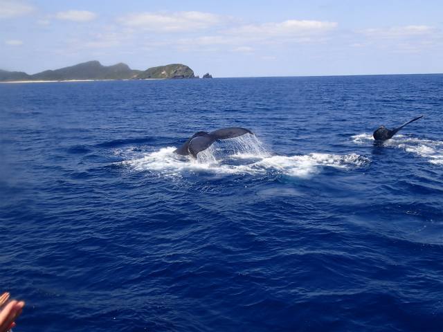 ダイビングも終了し、着替え用としたときに、沖の方でクジラ!