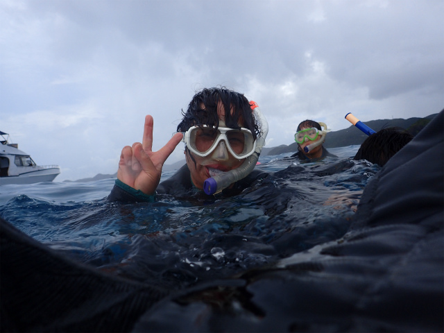 スノーケルチームも初めは海が怖くて、はしごから離れられなかったけど、、、。