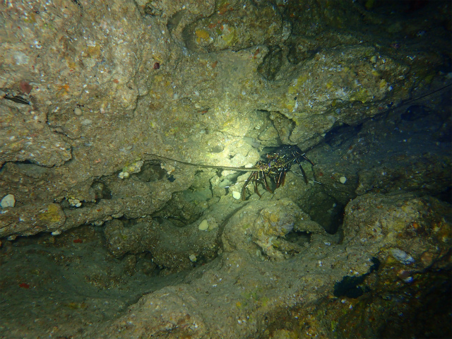 洞窟の中で大きなイセエビ。