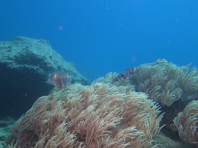 浅場のソフトコーラルにはコブシメがちらほら。
