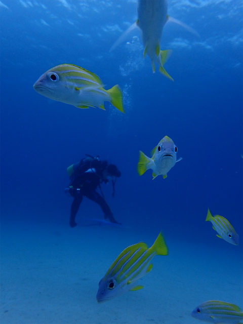 奥さんは初めは緊張もあったようですが、慣れてしまえば、綺麗な魚たちを見る余裕が出てきたようです♪