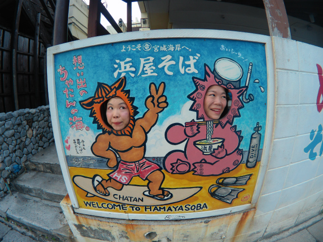 ショップ前の海は、沖縄本島2大ビーチポイントの1つ、宮城(砂辺)海岸!