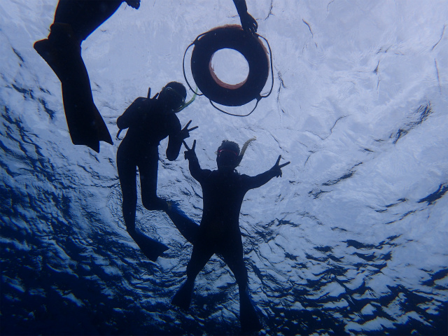 ダイビング後には、みんなでサンゴのきれいなポイントで最後まで海遊び。