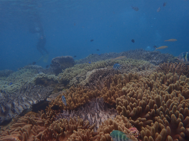 サンゴも魚たちも多いので、ビーチといえど侮れない😊