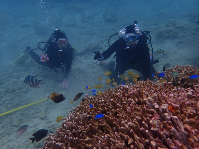 初ダイビングのMちゃんは、陸では緊張すると言っていましたが、入ったら全然余裕✌