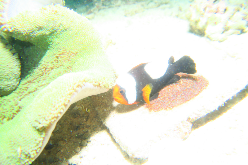 ちょっと濁っていましたが、ポイント内のクマノミたちをぐるっと泳いで観察。