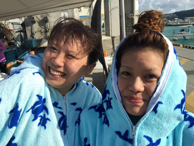 奥さんへは言葉が通じませんでしたが、海の中では喋れない事はみんな同じ。