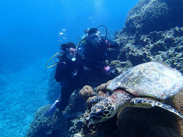 1ダイブ目からウミガメにも出会え、3ショットも無事に成功!