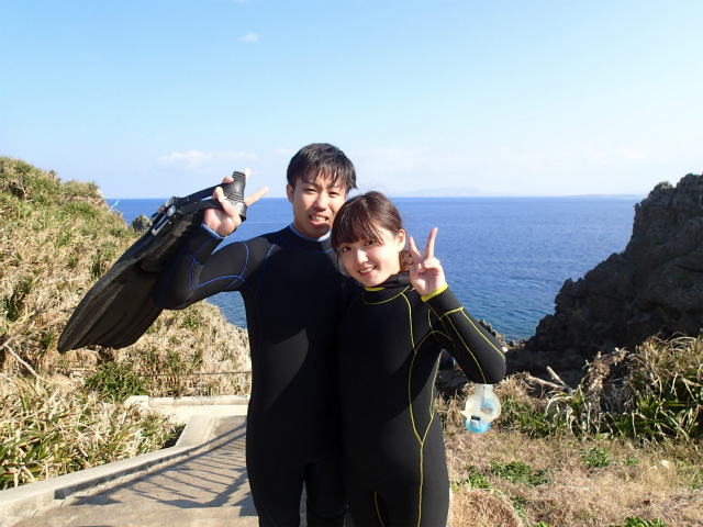 この時期には珍しく南東の風だったので、少しうねりはありましたが、希望の真栄田岬で潜れてよかった~!