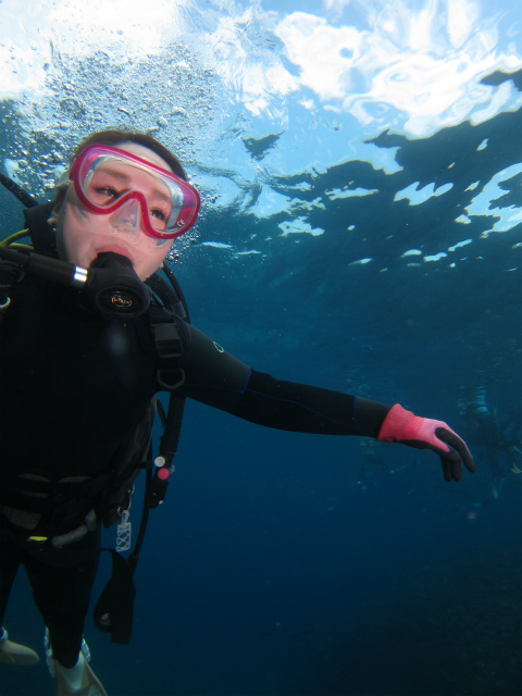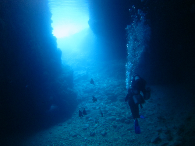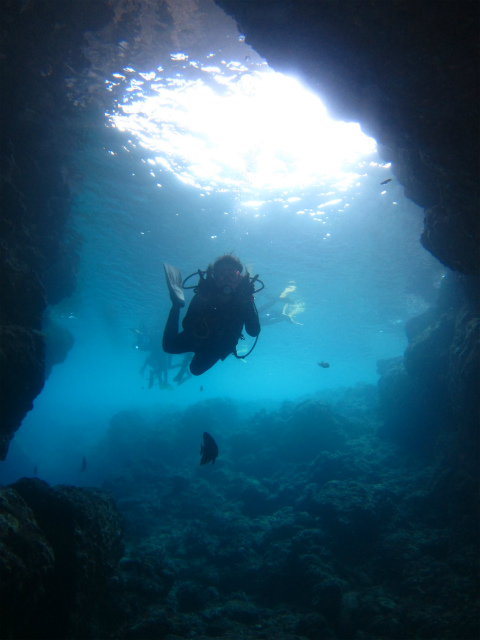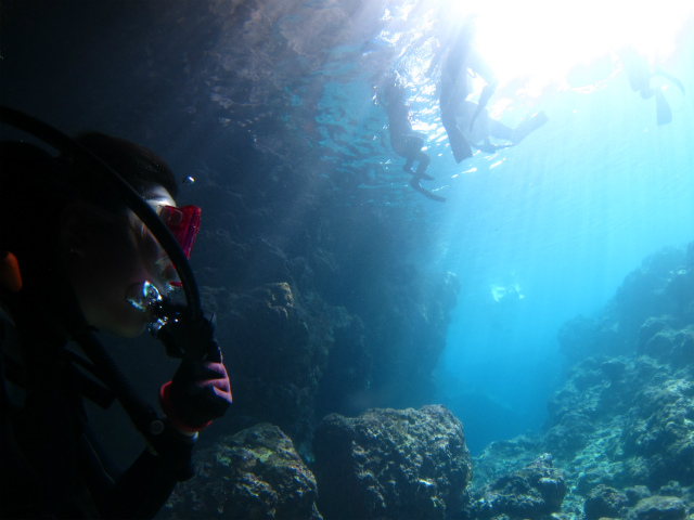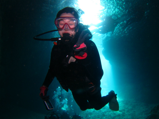 去年の夏以来の体験ダイビングですが、青の洞窟は初めてだったようです。