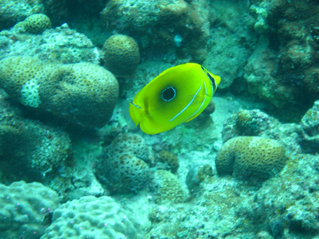 ただ、岩場も広がる真栄田岬にいるのは、底生生物も食べるからでしょうか??チョウチョウウオの中ではTOPクラスに綺麗な種類ですね♪