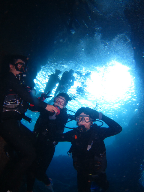 それでも全員が水中を楽しむ事ができました。もちろん、2本目の洞窟だって全員で満喫♪