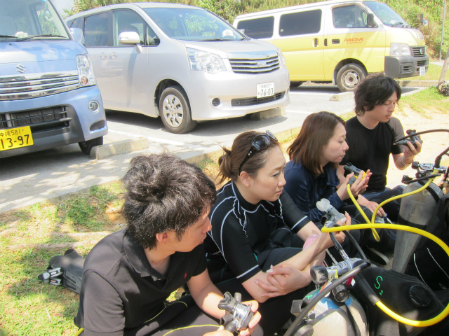 奥さんは今回が3回目、ご主人は初のダイビングだったので、しっかりゆっくり事前説明。