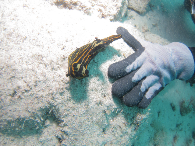 図鑑をみてもさまざま色や柄があるのですが、センテンイロウミウシでしょう♪