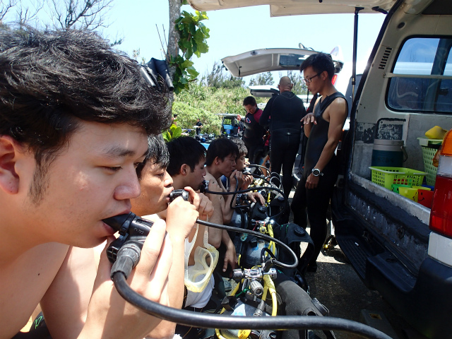 お友達のお2人は、うちなんちゅで、体験ダイビングは初めて。