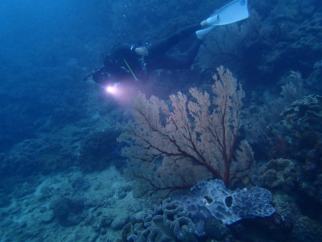 残念ながら、ダイバーのフィンキックによって折られたり、アンカーによって折れている事も見かけます…