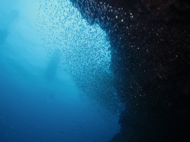 長く潜られているので、話せば色々と繋がりがあるものですね。まずは、豪快な岩を求めてドリフトダイブ♪