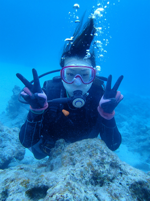 初めてのダイビングと言う事から、水面では緊張されていましたが、皆が通る道(笑)