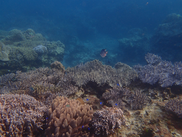 スノーケリングも真っ白な砂地と、船近くのロクセンスズメダイ・ミジュンの群れをじっくり観察できました♪