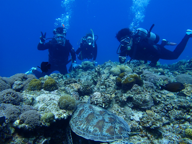 FUNチームは、午前の2ダイブは砂地、ウミガメとのんびりダイブ。