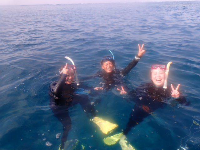 前日ご予約のお2人と、イナンビシでスノーケリングを行ってきました~。ん?スノーケリング??