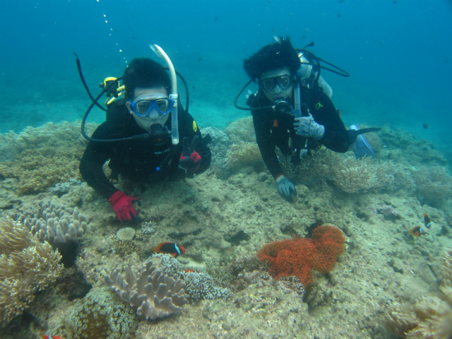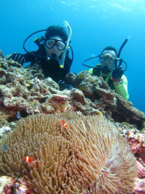 2本目にはたくさんのクマノミたちが住む、イナンビシのクマノミパラダイスへ。