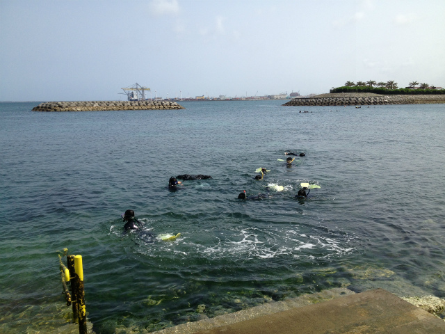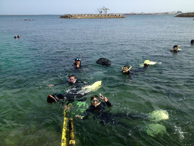 体験チームは1本目は水慣れの為にシュノーケリングをするチーム、前日のスキルを思い出すチームに分かれて開始。
