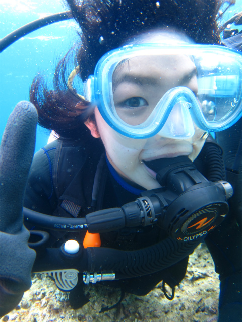 初めて口にするレギュレーターでの呼吸に戸惑った部分もあったようですが、潜ってしまえば快適だった様子。