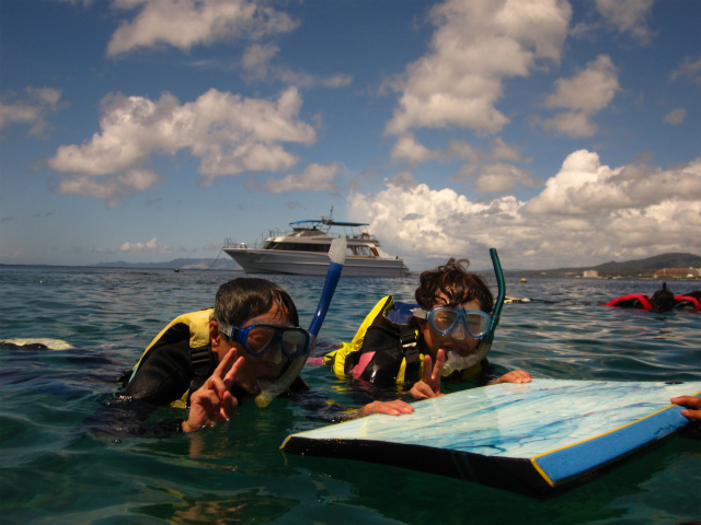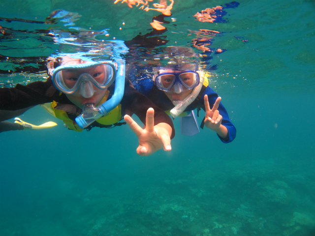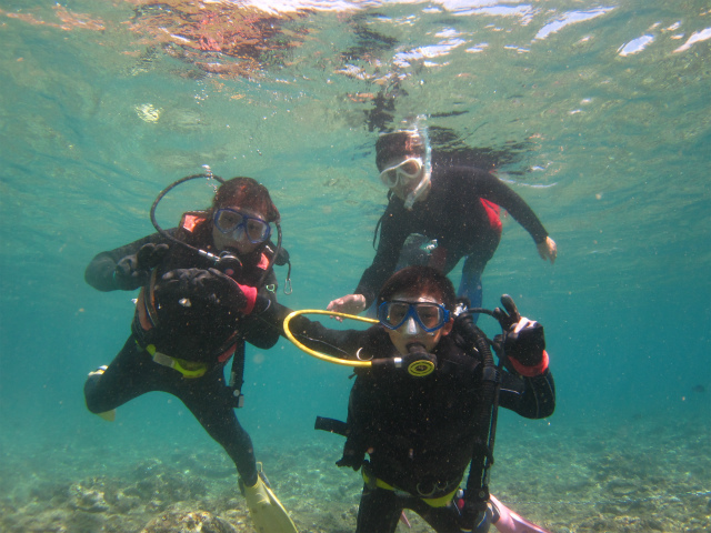 家族と一緒に真栄田、体験ダイビング&シュノーケリング