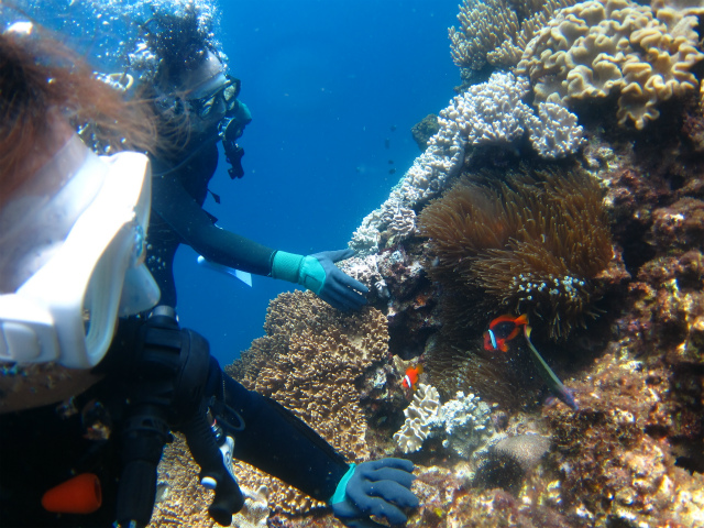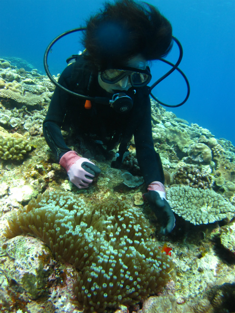 海の中にも慣れてきたようで、ソフトコーラルに群れるスズメダイや、ハマクマノミをじっくり観察されていたようです。